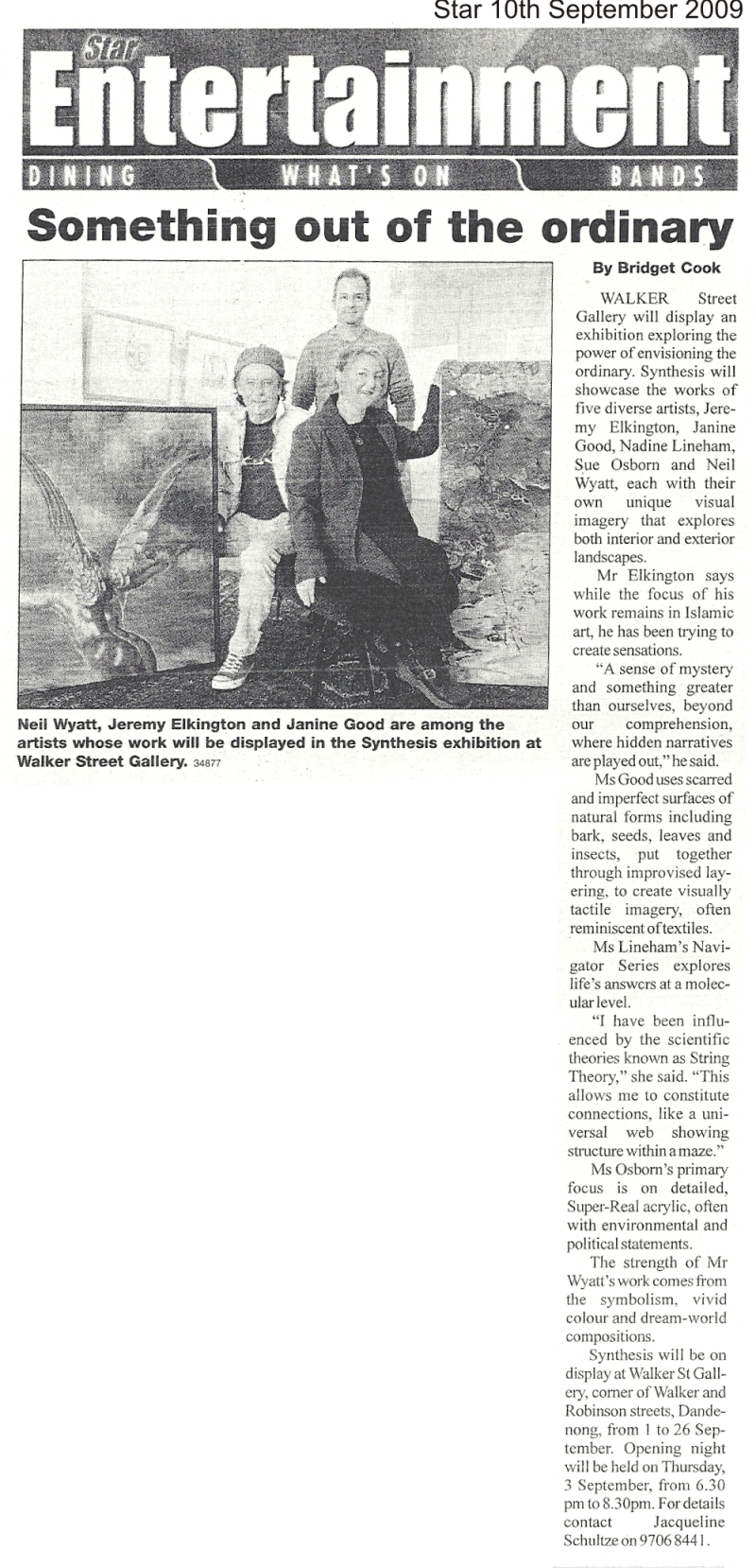 - 2009 September 1st -26th Walker St Gallery ‘Synthesis’