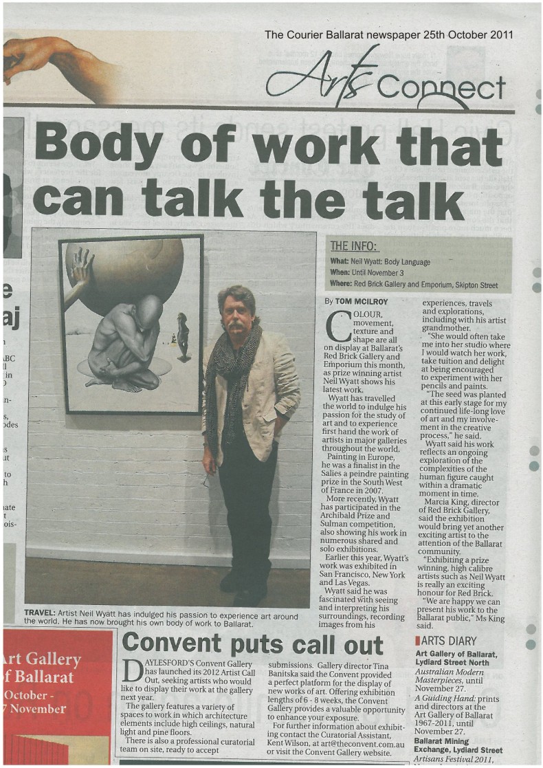 - 2011 October Ballarat, Australia, Solo Exhibition: 'Body Language'